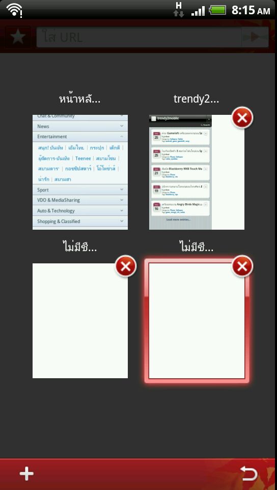 Sanook! Browser ก็เลยใช้วิธีสลับหน้าจอแบบนี้ ซึ่งสามารถเปิดได้สูงสุด 12 หน้าจอ