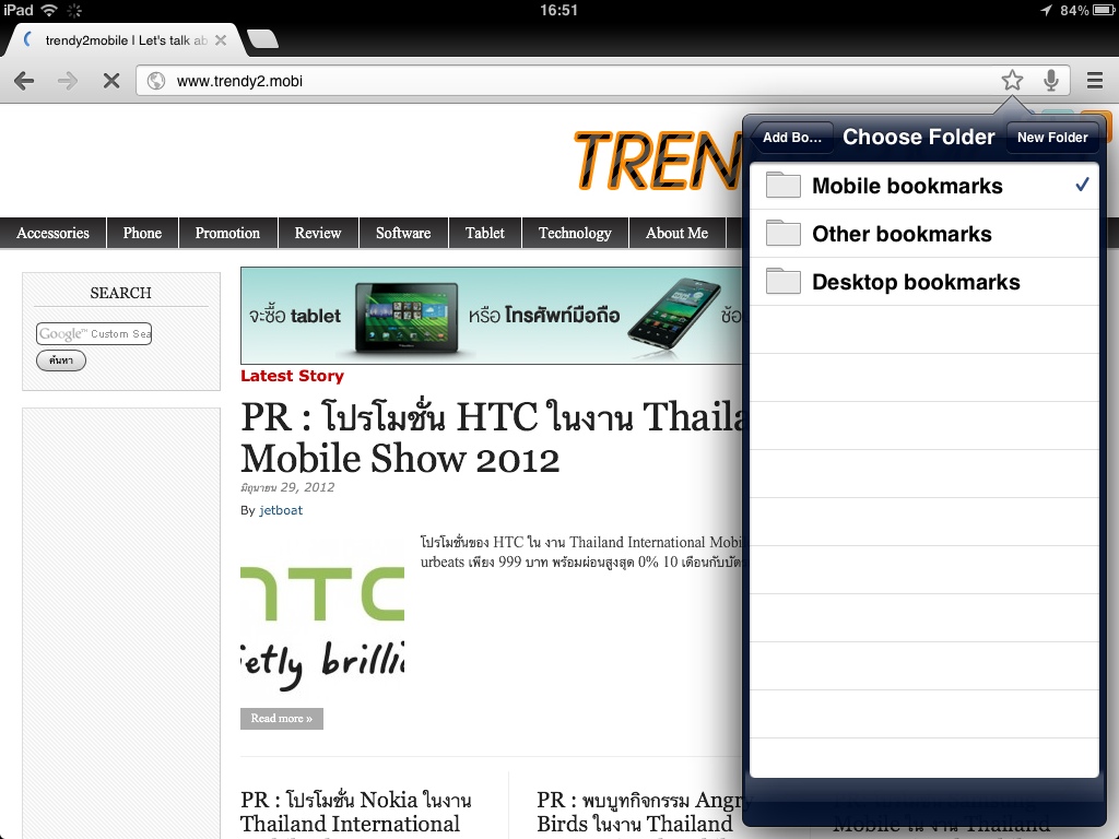 การเก็บ Bookmarks ไม่มีอะไรยากครับ แค่กดตัวที่มุมขวามือ ปล้วเลทอก Folderที่ต้องการเก็บ URL เอาไว้