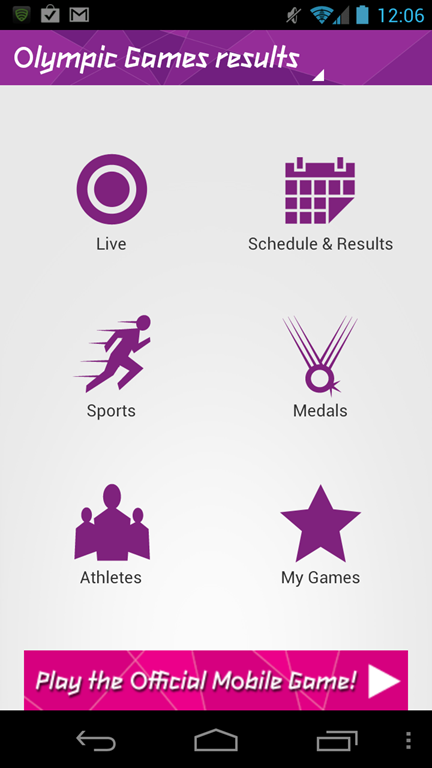 Live ,Schedule & Results ,Sports ,Medals ,Athletes , และ My Games
