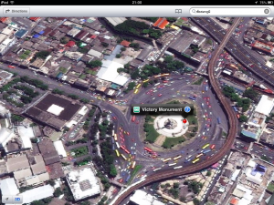 แผนที่ใน iOS6 ยังมีเหมือนเดิม การแสดงสภาพการจราจรยังไม่มีให้ใช้ในบ้านเรา