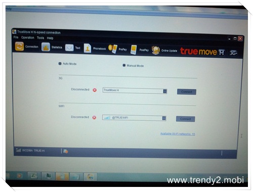 หน้าจอจะมีสองส่วนคือการเชื่อมต่อผ่าน 3G และ WiFi