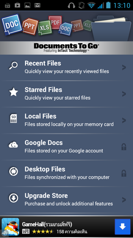 ที่กินพื้นที่หน่วยความจำในระบบที่ฉากหลัง และ Document To Go แอพลิเคชั่นสำหรับการใช้งานเอกสารออกฟฟิศบนโทรศัพท์มือถือ