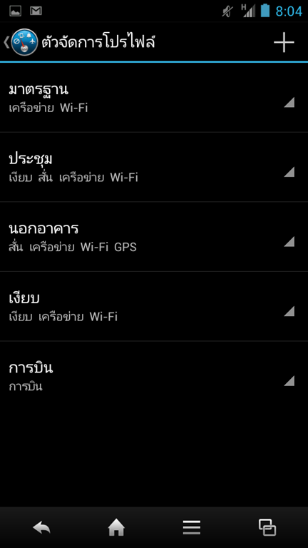 โหมดประชุมที่จะเป้นการปิดเสียง และเปิดสั่น โหมดนอกสถานที่ โหมดการบินที่จะปิดสัญญาณโทรศัพท์แต่ใช้งานส่วนอื่นในเครื่องได้อยู่
