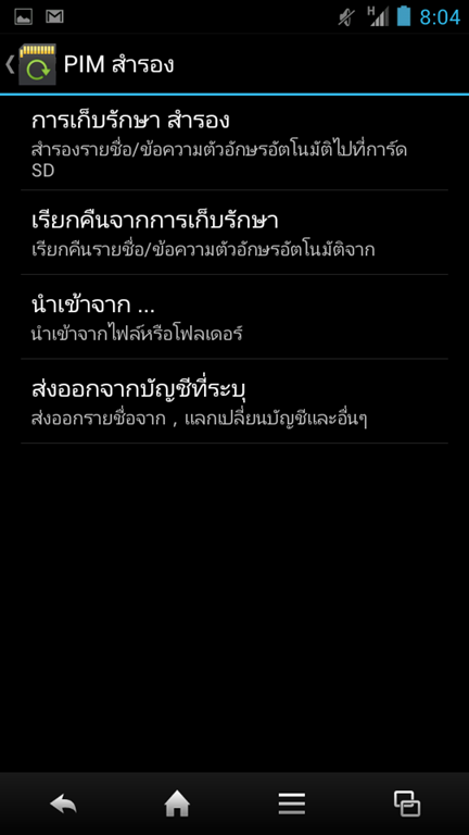 และอีกหนึึ่งแอพลิเคชั่นคือ แอพสำหรับสำรองข้อข้อมูลที่จะจัดเก็บข้อมูลอย่างรายชื่อในสมุดโทรศัพท์ ลง SD Card