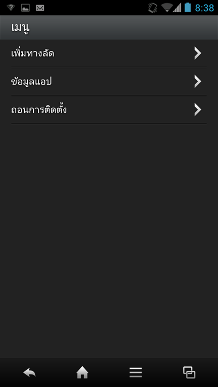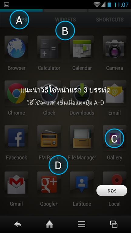 และเมื่อกดค้างไว้ก็จะไปเรียกเมนูย่อยขึ้นมาคือ การเพิ่มทางลัด ,ข้อมูลเกี่ยวกับตัวแอพลิเคชั่น