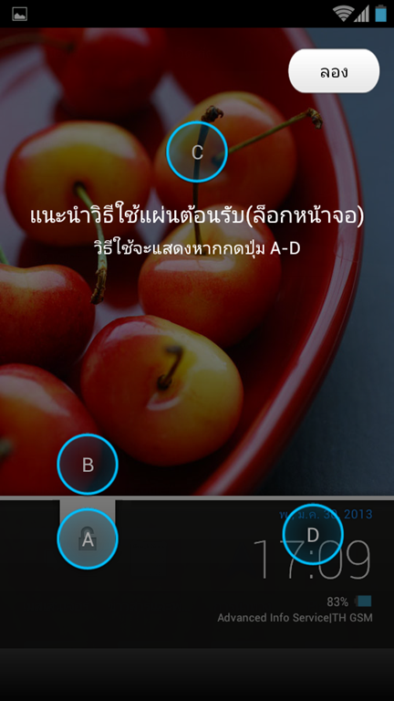 จะแตกต่างกับเครื่อง Android ธรรมดานิดหน่อย คือทันที่ปาดคาไว้ จะปรากฎเมนูลัดคือ