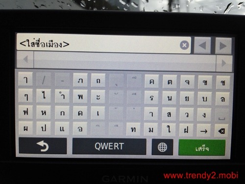 แป้นพิมพ์ใน Garmin Nuvi 42 ที่มาจากค่าโรงงานนั้น จะเป็นไทย-อังกฤษ แบบ QWERTY