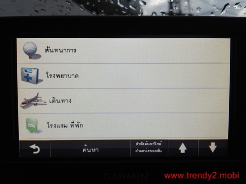 ในเครื่องของ Garmin จะแยกหมวดหมู่ออกมาแบบรวมกลุ่ม อย่างการเดินทางไปสนามบิน โรงแรมและที่พัก