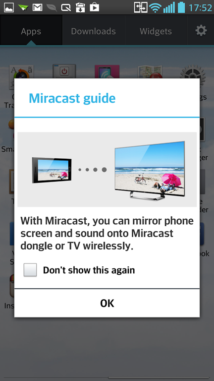 ที่เป็นการส่งต่อภาพไปยังโทรทัศน์ที่รองรับ DLNA หรือว่า Miracast Dongle