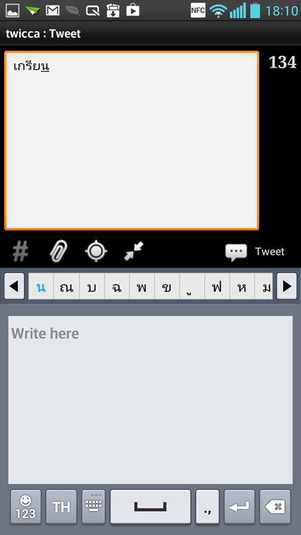 ในส่วนของแป้นพิมพ์ไทยที่ติดมากับ LG ความเห็นส่วนตัว เป็นแป้มพิพม์ที่ใช้ยากอยู่ซักหน่อย