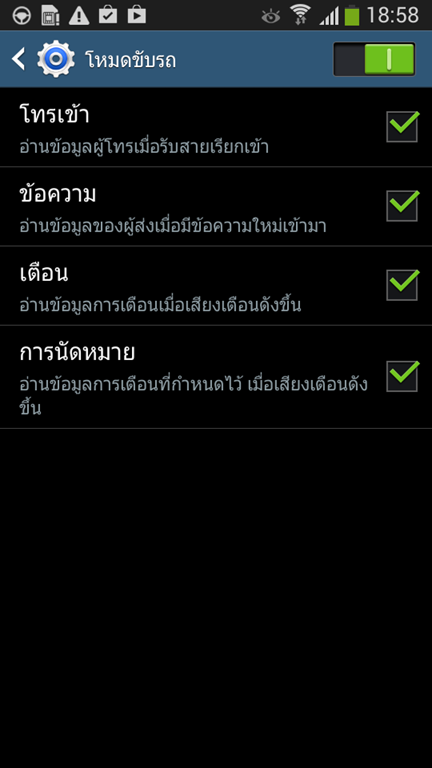 โหมดอ่านออกเสียงให้เราฟังในเวลาขับรถอันนี้ก็ยังอยู่
