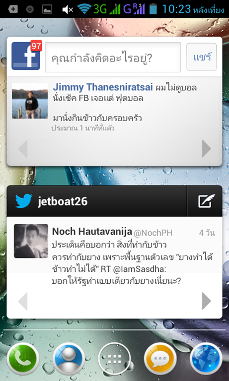 แต่ตัแอพลิเคชั่นที่ให้มานั้นให้มาแบบหลักๆ ครบเลย ทั้ง Facebook Twitter แต่ที่แปลกใจนิดนึงคือ