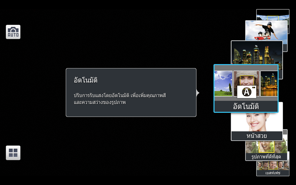 ทั้งโหมดอัตโนมัติ การถ่ายภาพกลางคืน การถ่ายภาพกีฬา การเลือกภาพที่ดีที่สุด หรือว่าถ่ายภาพแบบหน้าสวย