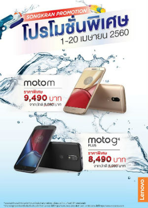 - Moto G4 Plus และ Moto M สมาร์ทโฟนดีไซน์สวยที่มาพร้อม Nano-coating ช่วยป้องกันตัวเครื่องจากฝุ่นและละอองน้ำได้อย่างหมดห่วง หมดกังวลปัญหาน้ำเข้าเครื่องขณะฉลองปาร์ตี้สงกรานต์สุดมันส์ได้อย่างแน่นอน เมื่อซื้อ Moto G4 Plus ราคา 8,990 บาท รับส่วนลดทันที 500 บาท และ Moto M ราคา 9,990 บาท รับส่วนลดทันที 500 บาท