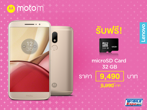 - สำหรับ Moto M สมาร์ทโฟนดีไซน์สวยหรูระดับพรีเมี่ยมในราคาเพียง ราคา 9,990 บาท รับส่วนลดทันที 500 บาท และ Micro SD Card ความจุสูงถึง 32 GB เพิ่มพื้นที่เก็บความบันเทิงแบบไม่อั้น ทั้งชมซีรีส์เรื่องโปรด หรือฟังเพลงสุดฮิตได้อย่างไร้ขีดจำกัดแน่นอน