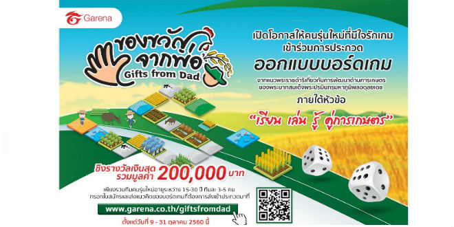 รวมถึงดูรายละเอียดของโครงการเพิ่มเติมได้ที่ http://www.garena.co.th/giftsfromdad