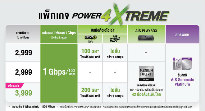 ดูข้อมูลเพิ่มเติมที่ www.ais.co.th/fibre/power4xtreme หรือสอบถามเอไอเอส คอลเซ็นเตอร์ โทร. 1175