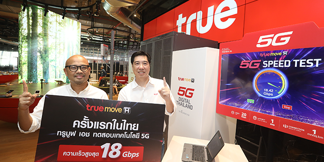 “จากที่คณะกรรมการกิจการกระจายเสียง กิจการโทรทัศน์ และกิจการโทรคมนาคมแห่งชาติ (กสทช.) ได้อนุมัติให้ทรูมูฟ เอช ใช้คลื่นความถี่ย่าน 28 GHz. เพื่อนำมาทดสอบและสาธิตการใช้งานเทคโนโลยี 5G นั้น ทางทรูมูฟ เอช ได้ติดตั้งอุปกรณ์ที่ทรู แบรนดิ้ง ช้อปไอคอนสยาม ซึ่งเป็นจุดหมายปลายทางยอดนิยมแห่งใหม่ มีความต้องการใช้งานออนไลน์ที่หนาแน่น ซึ่งทรูมูฟ เอช ประสบความสำเร็จในการทดสอบอย่างดีเยี่ยม สร้างประวัติศาสตร์ความเร็วสูงถึง 18 Gbps ครั้งแรกในประเทศไทย ซึ่งเร็วกว่า 4G ถึง 20 เท่า นอกจากนี้ เรายังเปิดให้ลูกค้าทั่วไปสามารถทดสอบความเร็วด้วยตัวเองได้ที่ทรู แบรนดิ้ง
