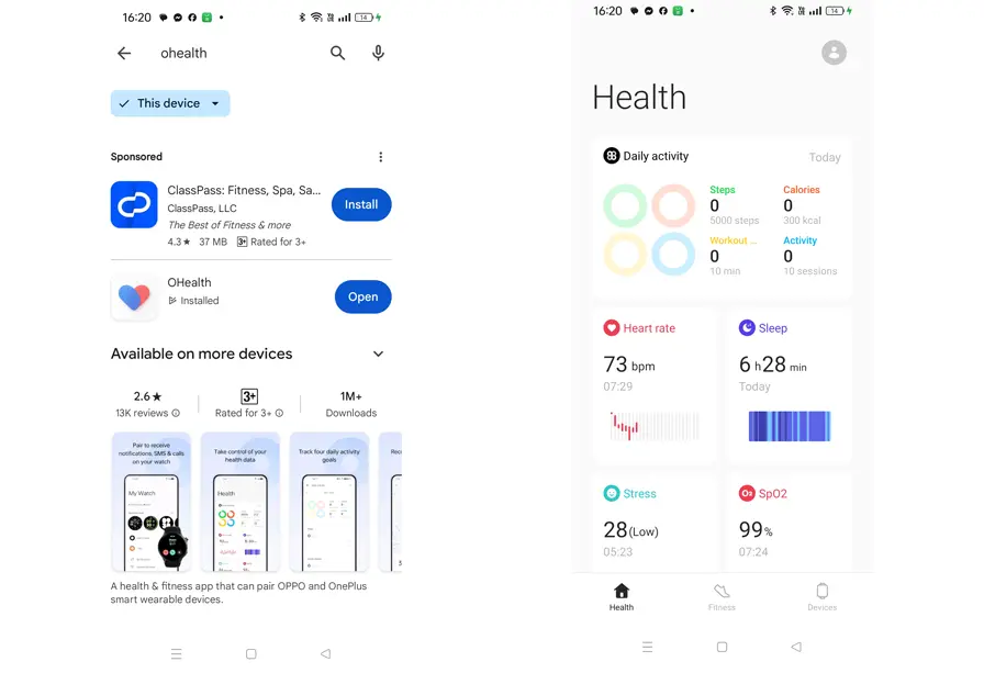 การเชื่อมต่อนาฬิกากับโทรศัพท์ครั้งแรกต้องดาวน์โหลดแอป OHealth จาก PlayStore ก่อนนะครับ โดยใช้งานร่วมกับโทรศัพท์ที่เป็น Android 8.0 ขึ้นไป