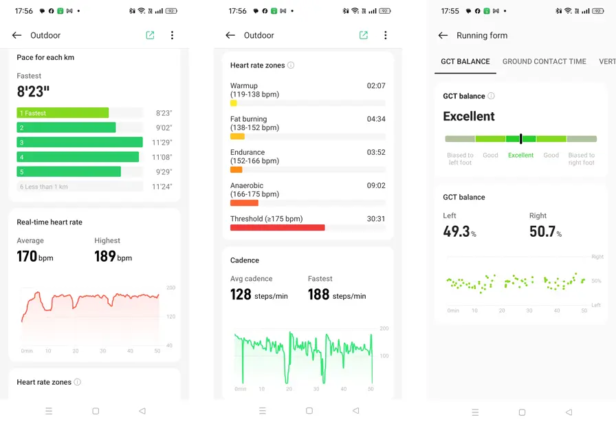 ส่วน GCT Balance นั้น เนื่องด้วยความที่ว่าเราไปวิ่งมา การวิ่งจะต้องมีการลงน้ำหนักที่เท้าซ้าย และเท้าขวาตัวแอปพลิเคชั่นเขาก็ตรวจเรื่องนี้ให้เรา อยางของผมได้ Excellent คือ การลงน้ำหนักที่เท้าทั้งสองข้างคือสมดุลกัน การวิ่งที่ดีเราไม่ควรจะให้ขา หรือเท้าข้างใดข้างนึงรับภาระจนมากเกินไปครับ