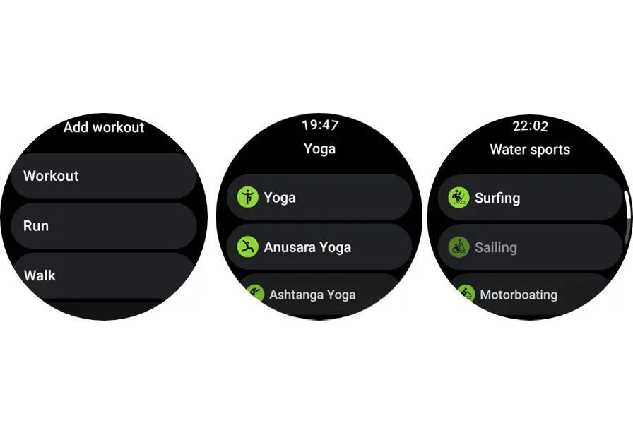 ในเรื่องของประเภทกีฬานั้น ตัวนาฬิกาใส่กันมากว่าร้อยชนิด เรื่องนี้เป็นสิ่งที่ผู้ผลิตแต่ละรายพยายามจะนำมาเป็นจุดขายครับ ซึ่งผมก็จะแนะนำว่าก่อนที่คุณจะซื้อ smart watch สักเรือน ลองดูว่าอันไหนที่มีรูปแบบกีฬา หรือว่าการออกกำลังกายที่เหมาะสมกับคุณ