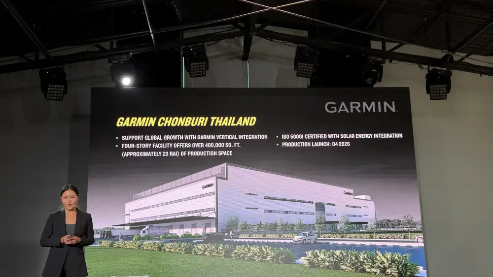 “สำหรับประเทศไทย เป็นเวลาเกือบ 5 ปีนับตั้งแต่ที่ Garmin ได้เข้ามาเปิดสำนั กงานในประเทศไทยอย่างเป็นทางการ เราได้รับความเชื่อมั่ นและกระแสตอบรับที่ดีจากผู้บริ โภคชาวไทยมาโดยตลอด โดยในครึ่งปีแรกของปี 2568 Garmin ประเทศไทยมีรายได้เติบโตกว่า 35% นอกจากนี้ จากข้อมูลผู้ใช้บน Garmin Connect ยังพบว่า คนไทยทำกิจกรรมการฝึกความแข็ งแรง (Strength Training) เพิ่มขึ้นมากที่สุด โดยมีสถิติการทำกิจกรรมเติบโตถึ ง 40% รองลงมาเป็นกิจกรรมคาดิโอในร่ม (Indoor Cardio) อย่าง พิลาทิส HIIT เติบโตมากกว่า 15% สะท้อนให้เห็นถึงกระแสสุขภาพที่ ยังคงเติบโตต่อเนื่ องในประเทศไทยเพื่อตอบกระแสสุขภาพและรองรั บการเติบโตทางธุรกิจในอนาคต Garmin จึงตัดสินใจที่จะขยายฐานการผลิต ตั้งโรงงานแห่งแรกในประเทศไทยที่ จังหวัดชลบุรี โดยคาดการณ์ว่าจะสามารถเดิ นสายการผลิตได้ภายในไตรมาสสุดท้ ายของปี 2569 เพื่อรองรับการเติบโตของ Garmin ทั้งในระดับโลกและภูมิภาคเอเชี ยตะวันออกเฉียงใต้ นับเป็นการตอกย้ำกลยุทธ์ การขยายธุรกิจแนวดิ่ง (Vertical Integration) ซึ่งหมายถึงการที่ Garmin เป็นผู้ดำเนินการเองทั้ งกระบวนการ ตั้งแต่พัฒนาด้านวิศวกรรม การผลิต การตลาด ตลอดจนการให้บริการ ทำให้เราสามารถควบคุมคุณภาพทั้ งสายการผลิต และเพิ่มความสามารถในการปรับตั วให้เท่าทันการเติบโตของอุ ตสาหกรรมและพฤติกรรมผู้บริโภคที่ เปลี่ยนแปลงไปอย่างรวดเร็วได้ นอกจากนั้น โรงงานแห่งแรกในประเทศไทยแห่งนี้ ยังพัฒนาภายใต้มาตรฐานด้านการจั ดการพลังงานในระดับสากล (ISO 50001) ด้วยการใช้เทคโนโลยีประหยัดพลั งงานอย่างระบบโซลาเซลล์อีกด้วย”