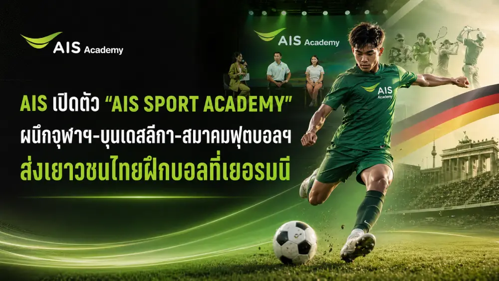 AIS ประกาศเดินหน้ายุทธศาสตร์ครั้งใหญ่เพื่อยกระดับวงการกีฬาไทย เปิดตัว “AIS SPORT ACADEMY” ภายใต้แนวคิด “พลังคน สร้างพลังกีฬาไทย” มุ่งพัฒนาอุตสาหกรรมกีฬาไทยแบบครบวงจร ผ่านความร่วมมือกับพันธมิตรระดับประเทศและระดับโลก ได้แก่ จุฬาลงกรณ์มหาวิทยาลัย, บุนเดสลีกา เยอรมนี และสมาคมกีฬาฟุตบอลแห่งประเทศไทยฯ