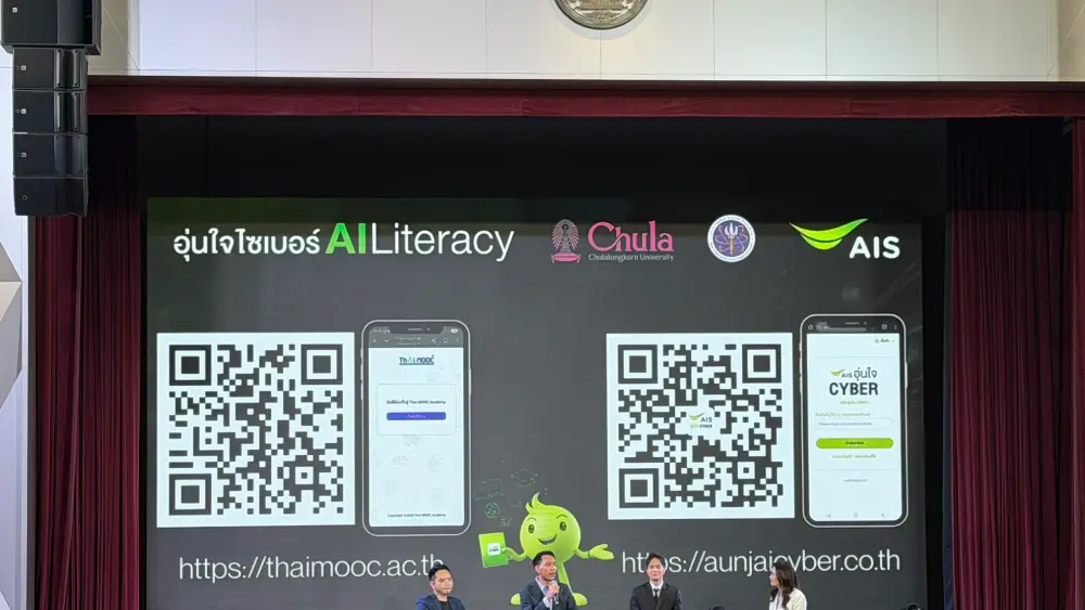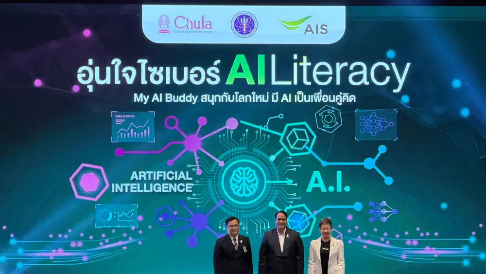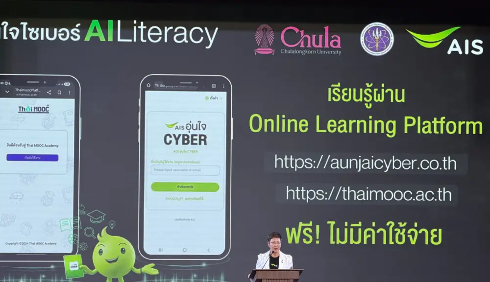 AIS ร่วมกับกระทรวงการอุดมศึกษา วิทยาศาสตร์ วิจัยและนวัตกรรม (อว.) และจุฬาลงกรณ์มหาวิทยาลัย เปิดตัวคอร์สเรียนออนไลน์ “อุ่นใจไซเบอร์ : AI Literacy” เพื่อยกระดับความรู้และทักษะด้านปัญญาประดิษฐ์ (AI) ของคนไทยให้ใช้งานได้จริงในชีวิตประจำวัน พร้อมเรียนรู้การใช้ AI อย่างปลอดภัย สร้างสรรค์ และมีจริยธรรม โดยผู้เรียนสามารถเข้าเรียนได้ฟรีผ่านแพลตฟอร์ม Thai MOOC และช่องทางของ “อุ่นใจ CYBER”